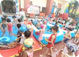 A “Mock Interaction Session” for the new admissions for Kindergarten wing to class first was organized in the premises of school. The purpose of the event was to introduce the parents to the system and learning experiences. It gave them the opportunity to receive constructive feedback about the children. The school keeps on conducting innovation techniques and styles with which interactions with parents become more rewarding and interesting. It was the time that is awaited the most by the parents, the time that affirms their faith in the school. The school bore a festive look to make the students feel special as it was the most important day of their life. Various charts, slogans and displays were prepared for the students. The tiny kids were welcomed by their favourite cartoon characters like Doremon, Shinchan, Mermaid etc. Instead of confining the kids in their boring questionnaires and written tests for interview, they were brought out in open by the teachers to enjoy the playful rainy weather and do some artistic/ recognition activities. The students enjoyed bungee jumping, train rides, swings etc. As every coin has two sides, some students looked nervous yet excited in the new environment. The beaming faces and bright eyes of the tiny kids infused energy and mesmerized each and every one present there. The parents too looked quite satisfied with the school and had all words of praises for the school. The School Principal, Dr. Jyoti Sachdev Pujara said that mock interaction session of tiny tots play an important role in assisting the children to be extrovert. Even the shyest students too interacted with teachers in such a convenient and child friendly environment. She further said that Quality Education is the hallmark of Green Land. The school helps the students to realize the social vices prevalent in the society and creates an atmosphere of ideas by making provisions for the growth of mind through many creative activities, by making teaching life inspired and life centered. On the whole it was a great fun for the blooming buds who enjoyed the whole experience of mock interview.