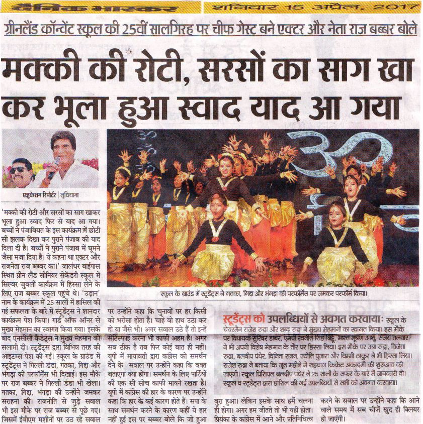 GREEN LAND CONVENT SCHOOL (Senior Secondary) NEW SUBHASH NAGAR, LUDHIANA SESSION: 2025–26 CIRCULAR NO. 74 Classes: Pre. Nursery to XII Dear Parents, * Kindly note that the departure timings of students on 17th October, 2025 (Friday) will be at 1:00 p.m. * You are requested to make necessary arrangements for your ward’s pickup accordingly. * Registration and admission for the new academic session (2026-27) are in progress. Parents may contact the undersigned for the same. * You are also requested to clear any pending dues/fees of your ward at the earliest. Please ignore this reminder if already paid. Principal Dated: 16.10.2025