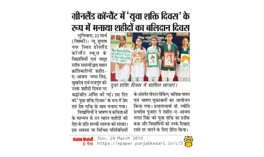 Green Land Convent School, New Subhash Nagar, Ludhiana observed Martyrs’ Day virtually to pay homage to Mahatma Gandhi-The Father of Nation and to honour other martyrs and soldiers who sacrificed their life defending the sovereignty of the nation. A special virtual morning assembly started by paying tribute to Mahatma Gandhi followed by his favourite prayer songs “Hey Ram & Raghupati Raghav Raja Ram”. The inspirational thoughts of Gandhi reverberated in the assembly. A Power Point Presentation on the life of Mahatma Gandhi showing his trials and tribulations and relentless efforts in the Indian Freedom Struggle and contribution to nation building was shown through live streaming. The students and staff members also observed silence prayer to pay tribute to the Father of the Nation. A Short Documentary on the life of Mahatma Gandhi was shown which presented his trials and tribulations and relentless efforts in the Indian Freedom Struggle. The Principal of the school, Dr. Jyoti Sachdev Pujara paid homage to Gandhi Ji and other martyrs who fought for the freedom, glory, welfare and progress of our nation. She gave a message on the principles of Bapu ji and added that this day is chosen to honour our brave martyrs who laid their lives for the country and we can never forget the contribution of our brave leaders who braced the storm of the British Raj and ushered in the dawn of freedom. Further, she stressed on the need for values in the present scenario and inspired the students to take a pledge to make this world a better place for all. She said that special emphasis is laid on patriotic values in Chain of Green Land Schools by organising various activities to impart messages given by our martyrs and make students realise value of sacrifices made by Indians for the pride and honour of the nation. The virtual congregation concluded with the soul stirring and motivational song “Ae mere watan ke logo”.