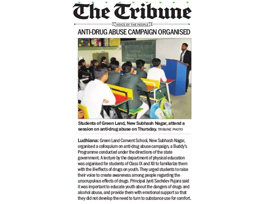 GREEN LAND CONVENT SCHOOL (Senior Secondary) NEW SUBHASH NAGAR, LUDHIANA Session: 2025-26 CIRCULAR NO. 81 P. Nsy. to XII Dear Parents The *National Anti-Doping Agency (NADA), in collaboration with **NCERT, has organized a series of **TV Live Sessions* to create awareness about *clean sports, ethical practices, and the harmful effects of doping* among students and youth. These informative sessions are available on YouTube and are highly recommended for students, teachers, and parents to watch to promote a culture of *fair play and healthy living*. 1. Live Dialogue: Gender Perspectives in Clean Sports https://www.youtube.com/watch?v=_XdksxnR_rQ 2. Doping: A Risk to Health, A Violation of Fair Play https://www.youtube.com/watch?v=Z0opfPzcwVU 3. Celebrating Sports Day: Athlete's Rights & Responsibilities for Fair Play https://www.youtube.com/watch?v=RggXaq-Wjtg 4. Protecting Your Game: Safe Medication Use and the Prohibited List Explained https://www.youtube.com/live/8QUhCWNJ-2I Parents are requested to encourage their wards to watch these sessions for better understanding of *sports ethics, health, and fair competition*. *Principal* 30.10.2025