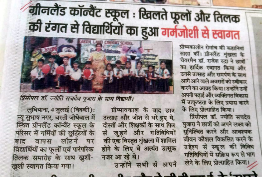 GREEN LAND CONVENT SCHOOL (Senior Secondary) New Subhash Nagar, Ludhiana Session: 2025-26 Circular No.58 Pre Nursery–XII Dear Parents * As per the directives of the Hon’ble Government of Punjab, the school will remain closed for the students of classes Pre Nursery to XII till 6th September, 2025 due to prevailing heavy rainfall and flood-like situation across Punjab. The schools will open on 8th September, 2025 for all the students from classes Pre Nursery to XII (Monday) as per usual school timings. * You are kindly requested to pay the pending dues. Principal 03.09.2025