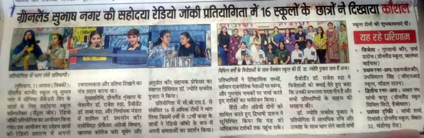 Green Land Convent School (Senior Secondary) New Subhash Nagar, Ludhiana Session: 2025–26 Circular No.: 50 Classes P. Nsy – V Dear Parents 1. The school is organizing an Inter-Class Fancy Dress Competition for the students of Classes p. Nsy to V on 14th August, 2025 (Thursday) to commemorate the 79th Independence Day of India in the school premises. 2. The theme for the competition will be National Leaders, Freedom Fighters, Armed Forces, and National Symbols. 3. Students should come dressed up according to the given theme, with complete make-up from home on the same day. 4. Students may prepare a 1–2 minute speech, slogan, or poem based on the character they have chosen. Principal 11.08.2025