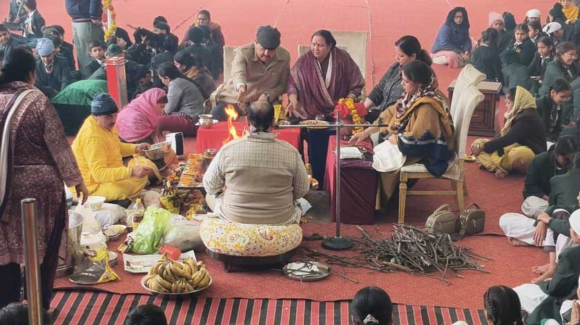 students and teachers gathered near bonfire offering prayers. The Girls and the Boys performed Bhangra and Giddha