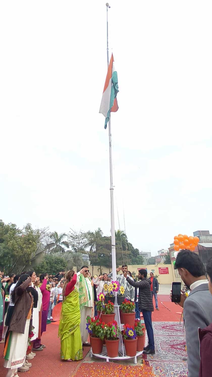 and other members of the school. The ceremony began with the unfurling of the National Flag by Sh. Rajesh Rudhra